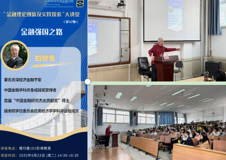 2025年9月23日,山西财经大学金融学院举办了第53期“金融理论创新及实践探索”大讲堂。本场讲座由金融学院主办,金融学院崔婕教授主持,特别邀请金融学界泰斗、中国金融学科终身成就奖获得者白钦先教授为我院师生进行了一场主题为“金融强国之路”的专题讲座。白教授以其亲历改革开放的广阔视角和深厚的学术积淀,为在场师生上了一堂融汇学术思想、家国情怀与人生智慧的精彩大课。