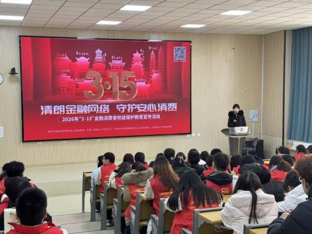 正值学雷锋志愿服务月深入开展之际,为深入弘扬雷锋精神,践行志愿服务理念,将金融为民初心融入社会公益,3·15国际消费者权益日,山西财经大学金融学院联合太原市公安局、中国民生银行太原分行,三方联动共同举办以“清朗金融网络 守护安心消费”为主题的金融消费者权益保护教育活动,通过知识讲解和趣味互动,为青年学子送上一堂专业、生动、实用的金融安全课,切实提升高校青年学生金融素养与反诈防骗能力。民生银行太原分行领导,太原市公安局反诈十佳讲师,学院党委书记、团委老师和部分辅导员参加此次活动。