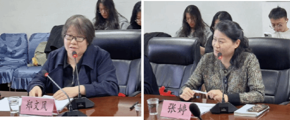 随后,两位老师对此次汇报进行了点评与总结,并对本期学术汇报给予了充分肯定。张婷老师表示,本次汇报以“耐心资本”为核心切入点,选题新颖,契合当前学术研究热点。但从价值取向来看,该研究在现实解释力和实践指导意义方面仍有进一步提升空间;从学术价值层面看,研究聚焦颠覆性创新主题,有效弥补了相关领域的研究不足,拓展了资本支持创新的研究视角,整体上具有较强的研究价值,同时也存在进一步完善的空间。与此同时,张婷老师还肯定了两位同学的现场表现,认为她们汇报逻辑清晰、准备充分、层次分明,选题具有较强的专业深度。针对汇报过程中略显紧张的情况,她建议同学们在今后的学术展示中继续加强锻炼,不断提升表达能力。郑文风老师则指出,两位同学的分享质量较高,无论是演讲表达还是PPT制作都较为用心,整体呈现清晰完整,值得肯定。从文章内容来看,该研究具有较强的现实意义,写作思路清晰、逻辑严谨,文章整体规范完整,值得同学们学习借鉴。同时,郑文风老师建议大家重点关注该研究中颠覆性创新的测度方法,借鉴其异质性分析中的多元视角,在学习文章优点的基础上,进一步思考如何优化自身的研究设计。
