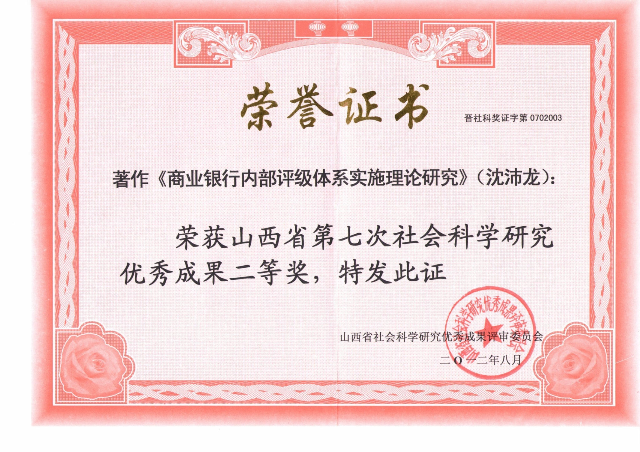 ⑤2012年第七次社会科学研究优秀成果二等奖