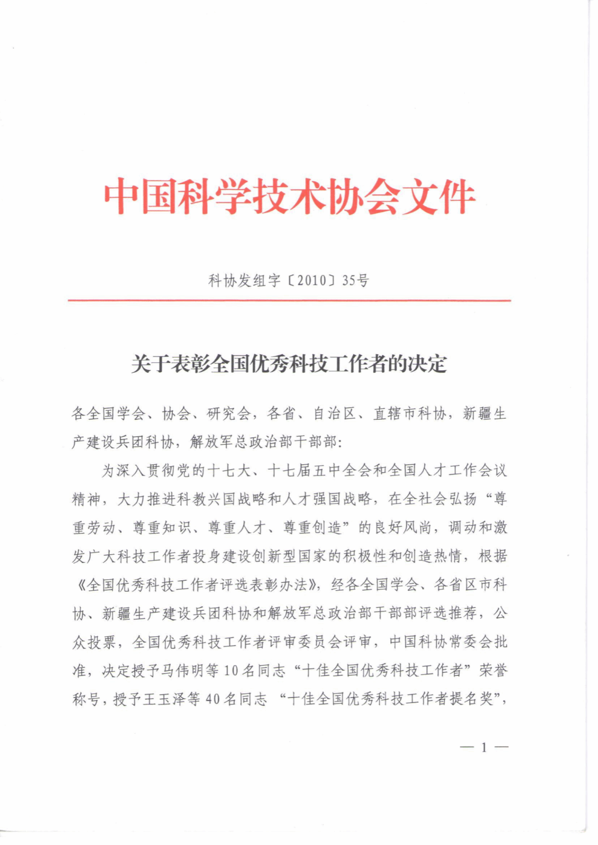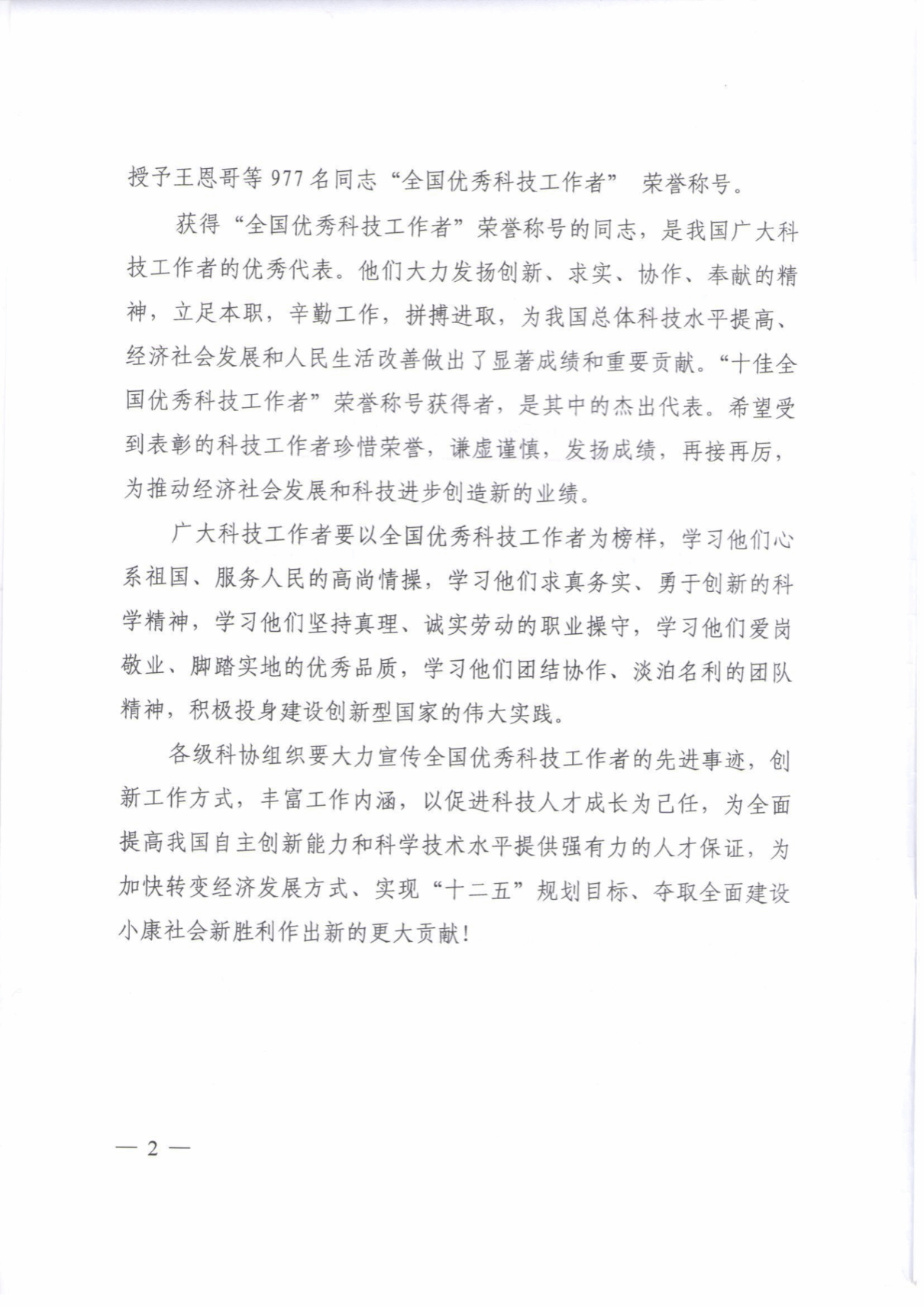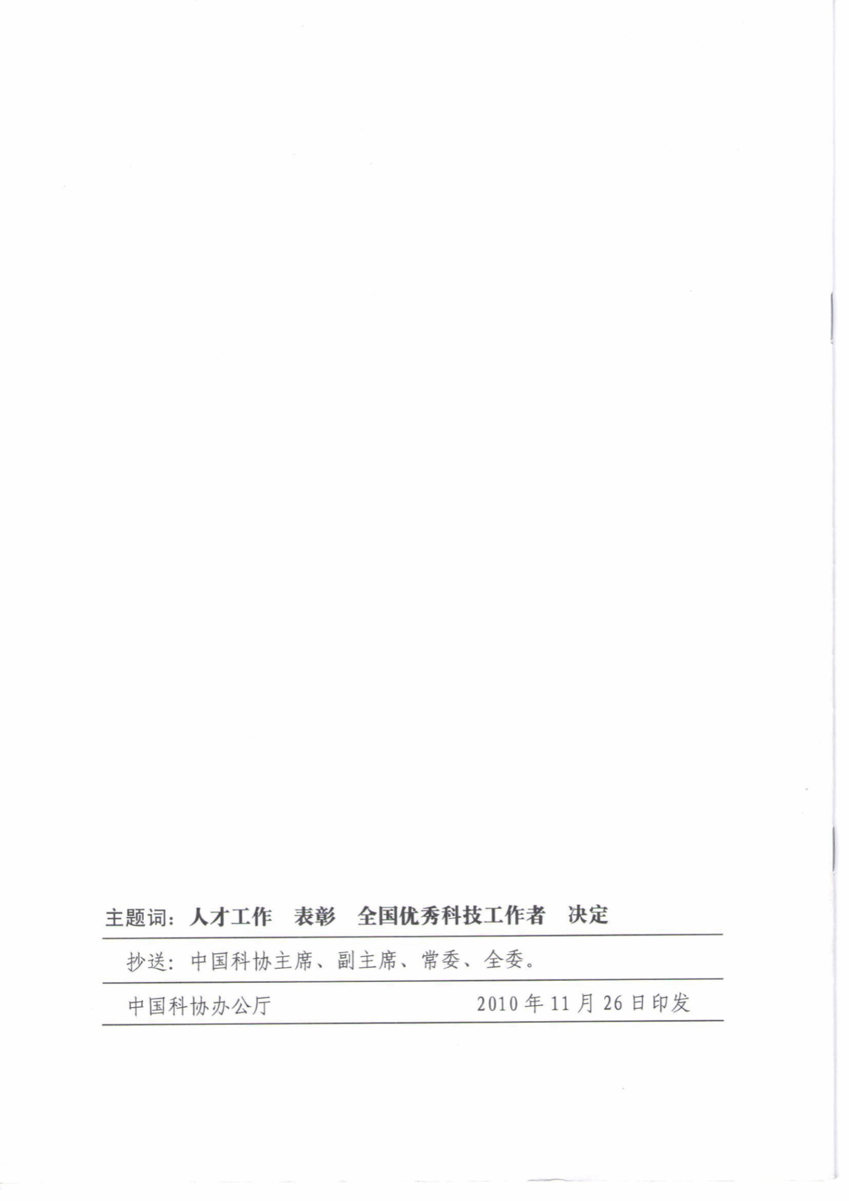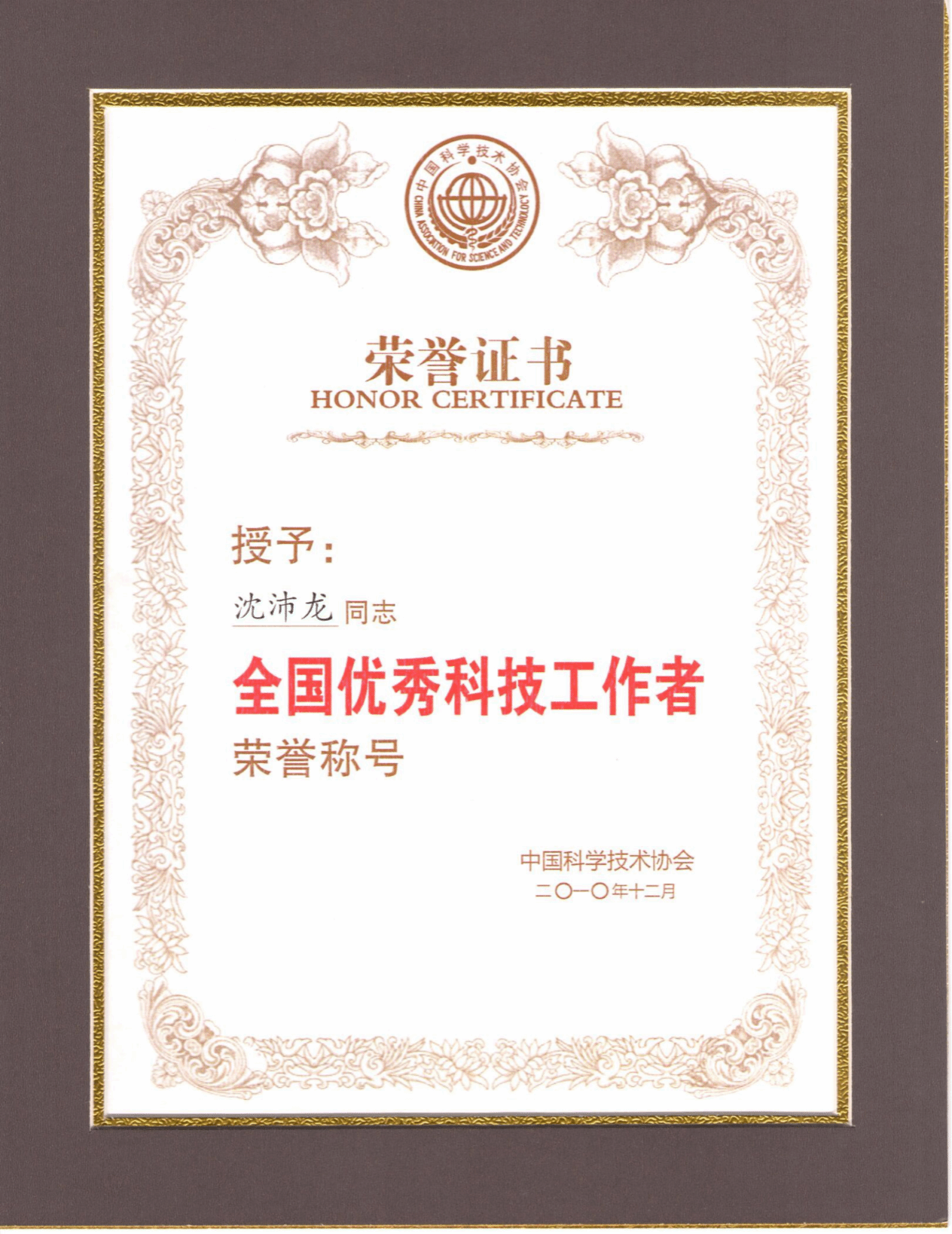 ⑧2010年全国优秀科技工作者