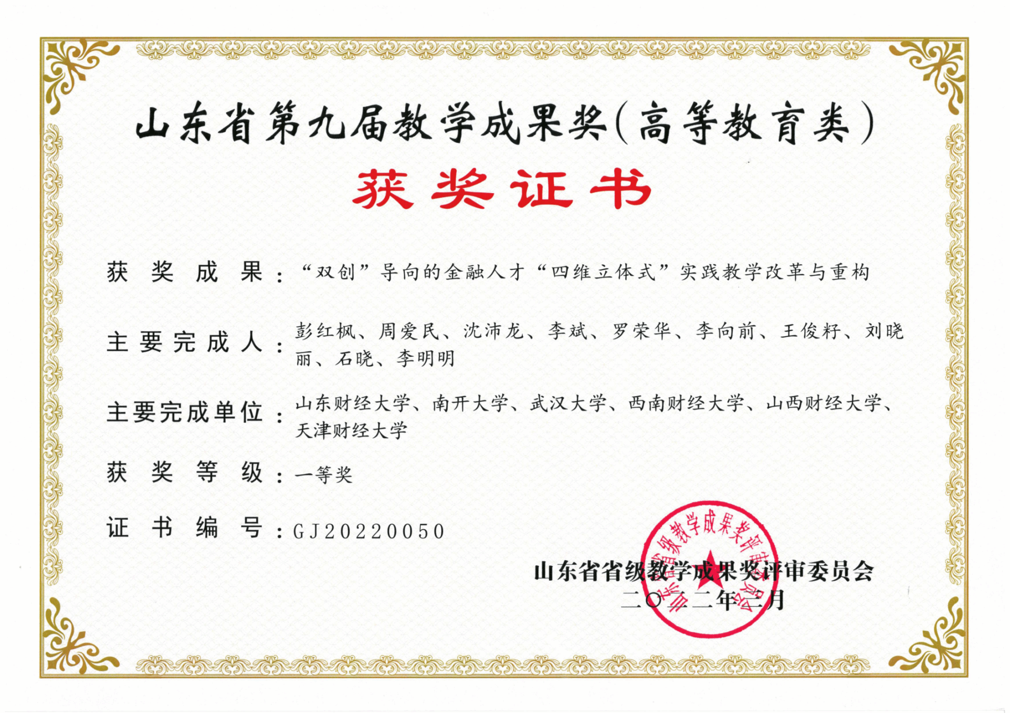 ②2022年山东省第九届教学成果奖一等奖