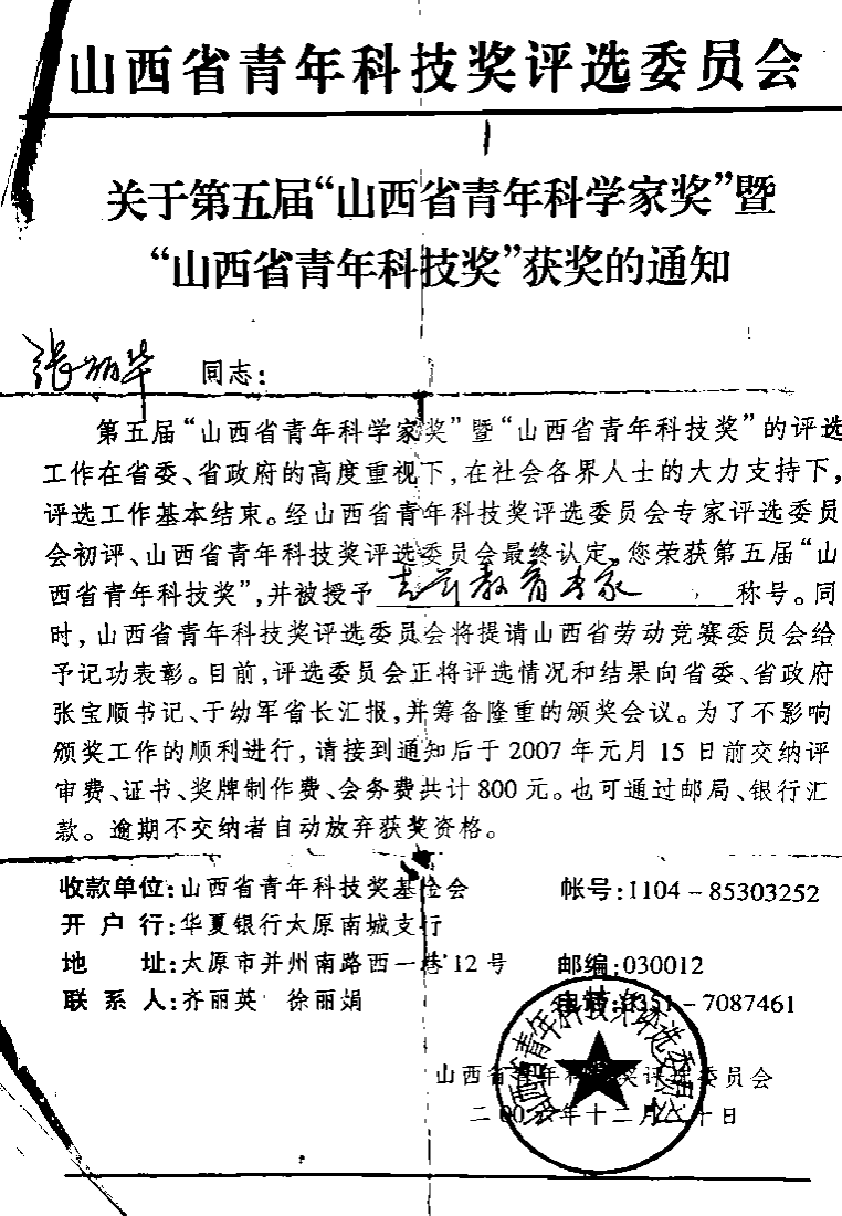 ①2007年山西省青年教育专家奖