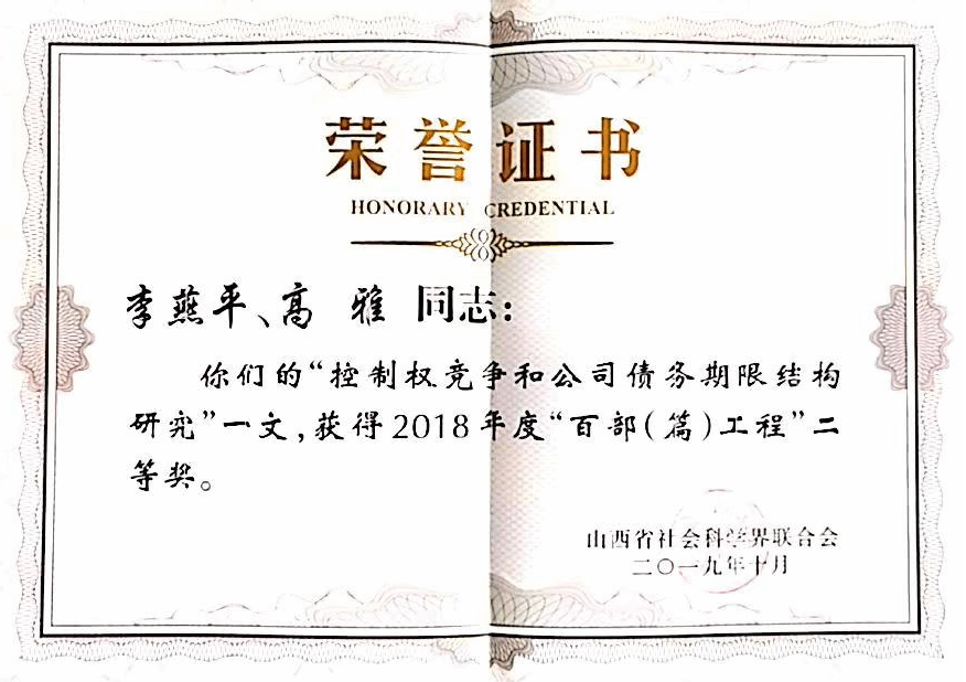 ②2018年山西省社会科学界联合会“百部(篇)工程”二等奖