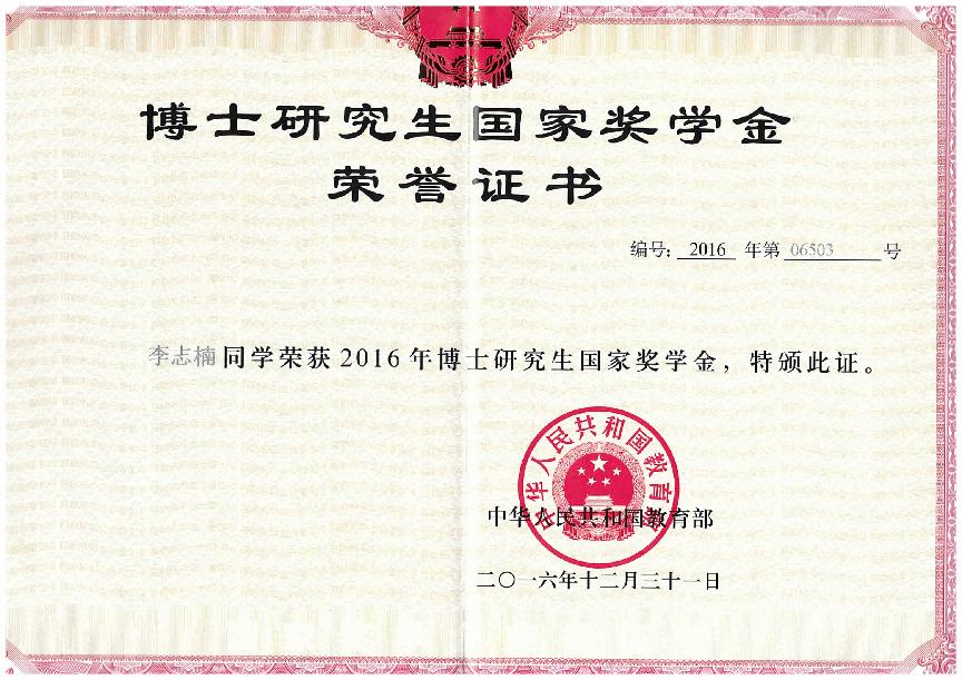 ①2016年博士研究生国家奖学金