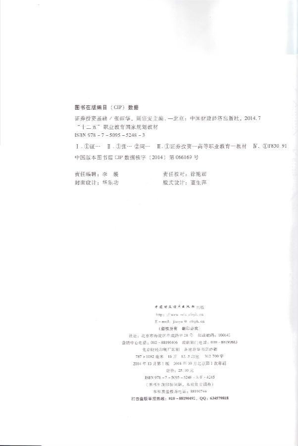⑦ 张丽华,教育部“十二五”规划教材《证券投资基础》,中国财政经济出版社(2014)