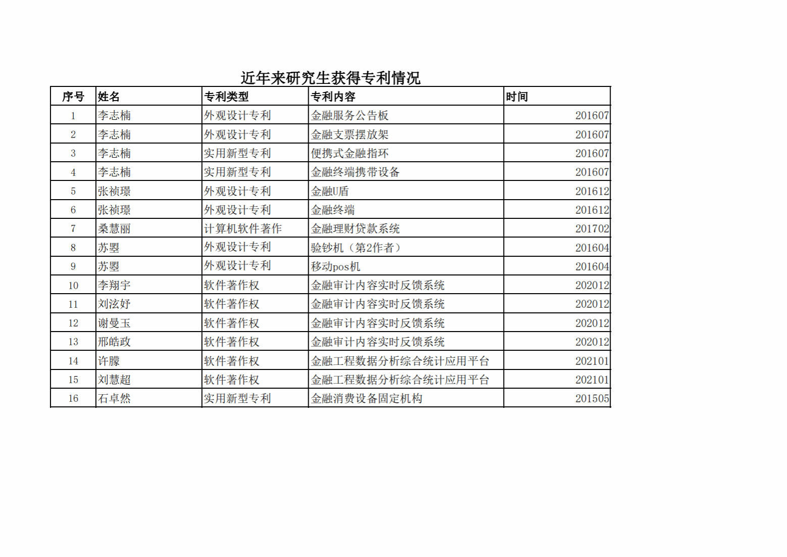 (1)近年来研究生获得专利情况