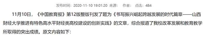 《中国教育报》综合报道我校教育改革成就-新闻网 (sxufe.edu.cn)