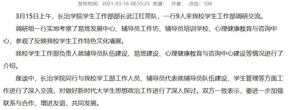 (2)长治学院来我校调研交流学生工作