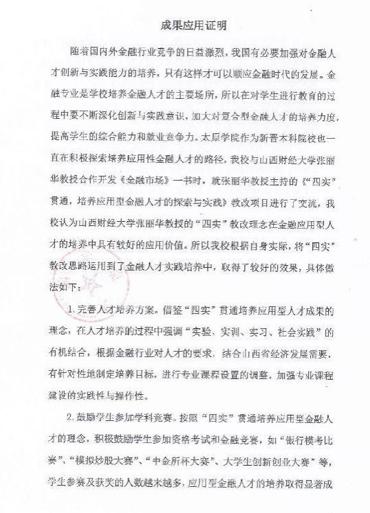 ④ 太原学院成果应用证明