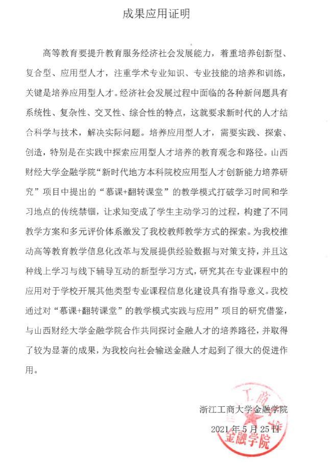 ⑦ 浙江工商大学成果应用证明